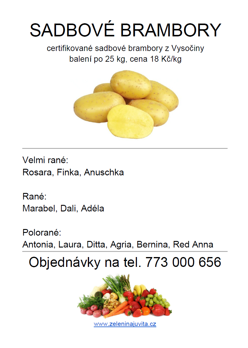 Řidič přijímá objednávky na sadbové brambory na telefonním čísle 773 000 656.